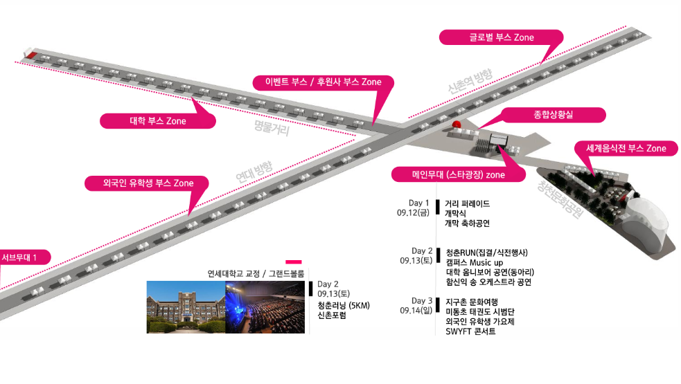 - 장소: 신촌 연세로 차 없는 거리 일대 (신촌역 2, 3번 출구 앞)