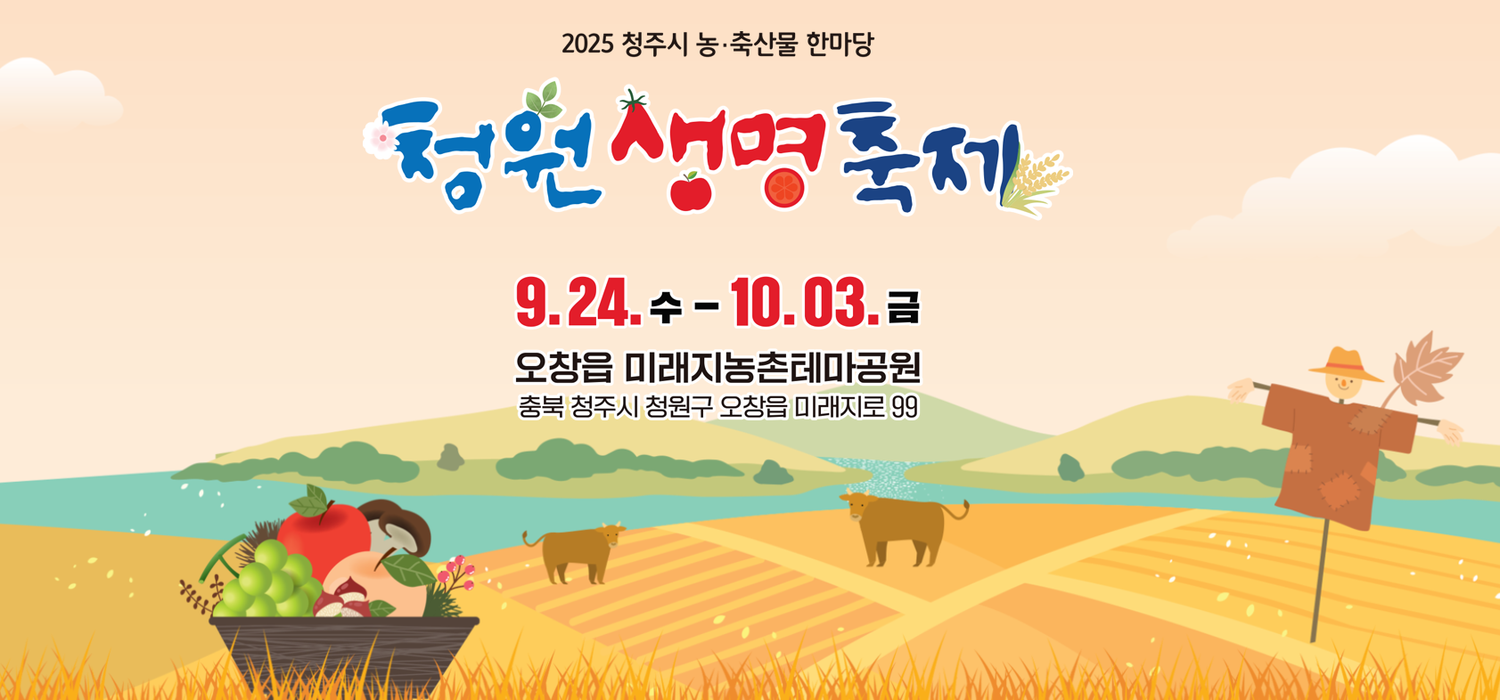 대한민국에서 가장 풍성한 가을을 만날 수 있는 친환경 농축산물 한마당, **'2025 청원생명축제'**가 우리 곁을 찾아옵니다.
