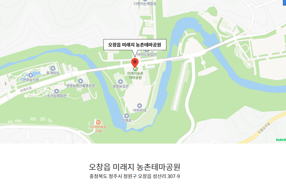 축제장인 '미래지농촌테마공원'을 직접 검색하기보다, 아래의 임시주차장을 목적지로 설정하고 이동하시는 것을 추천합니다.