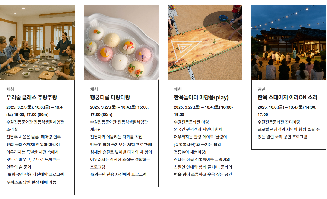 - 축제 기간: 2025년 9월 27일(토) ~ 10월 4일(토) / 8일간