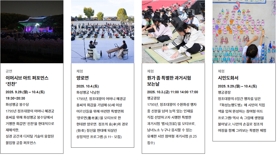 - 혜경궁 홍씨 진찬연: 혜경궁 홍씨의 회갑연을 재해석한 몰입형 궁중 퍼포먼스