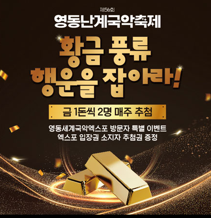 - 주요 장소: 영동천 둔치, 난계국악당, 와인터널 등 영동군 일원