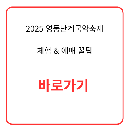 자차 이용 시, 내비게이션 목적지를 '영동천 둔치'나 '난계국악당'으로 설정하면 교통 체증의 한복판으로 들어가게 됩니다.