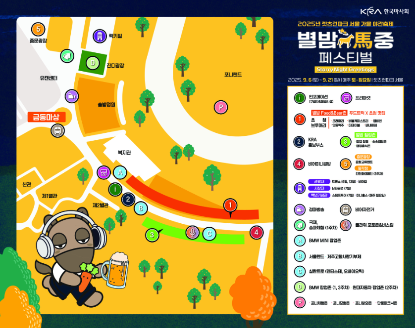 - 장소: 렛츠런파크 서울 (과천 경마공원) 내 넥스트월드 및 주로 내 잔디광장