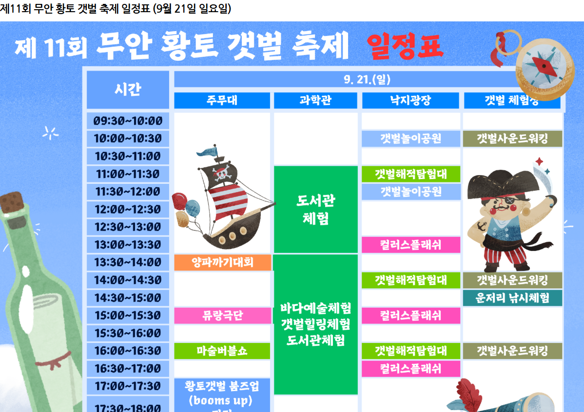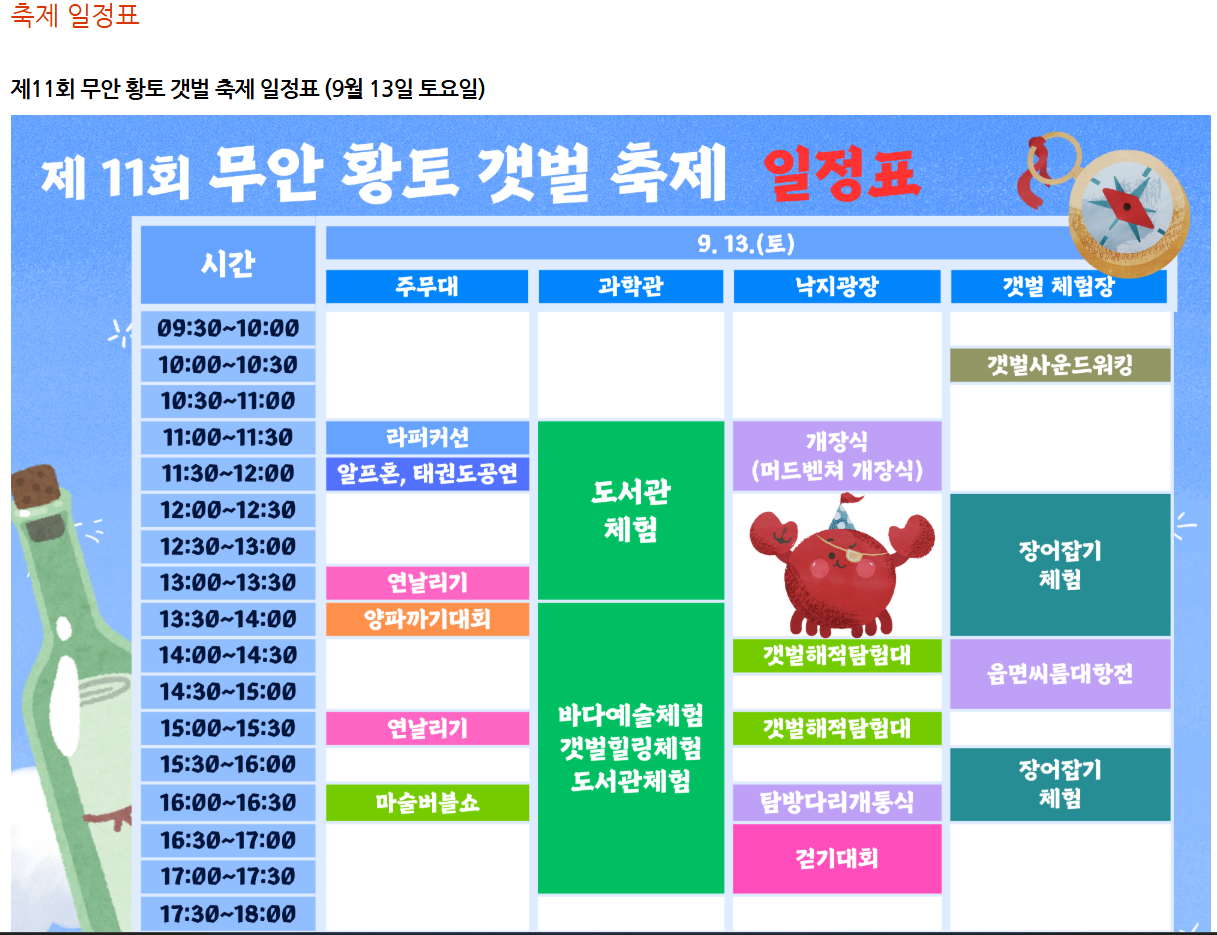 • 장소: 무안황토갯벌랜드 일원 (전남 무안군 해제면 황토갯벌길 88)